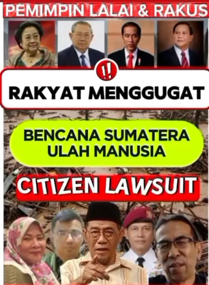JAKARTA, Zonamerahnews.id – Kuasa Hukum Gerakan Rakyat Menggugat Adv.Muhammad Yusuf,S.H dan Adv.Hidayat,S.H secara resmi telah menerbitkan dan menyampaikan Notifikasi/Somasi/Pemberitahuan kepada para Calon Tergugat dalam perkara Gugatan Rakyat (Citizen Lawsuit) yang diajukan warga negara atas dugaan kelalaian negara, kebijakan publik yang merugikan rakyat, serta dampak kerusakan lingkungan dan pelanggaran HAM. Sabtu (27/12/2025).