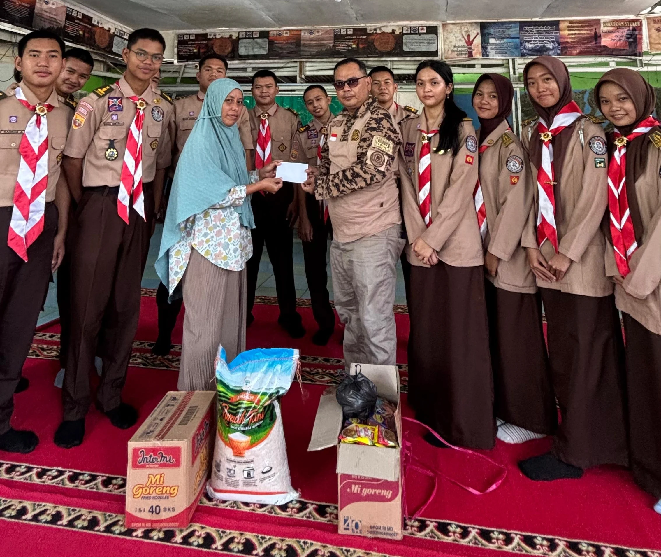 Rangkaian kegiatan lainnya yaitu menyerahkan bantuan berupa sembako dan uang tunai yang dikumpulkan dari donasi anggota Pramuka Saka Bhayangkara.